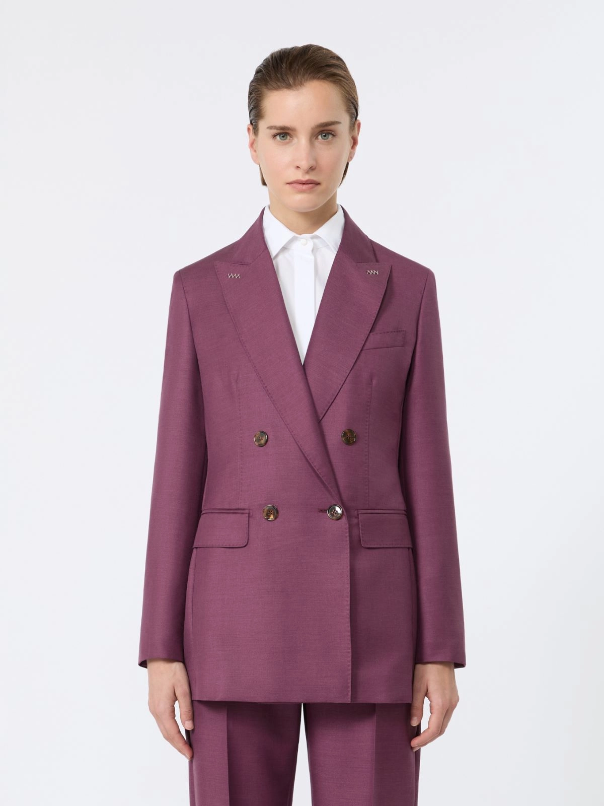 Wool, mohair and silk double-breasted blazer - Wine-coloured