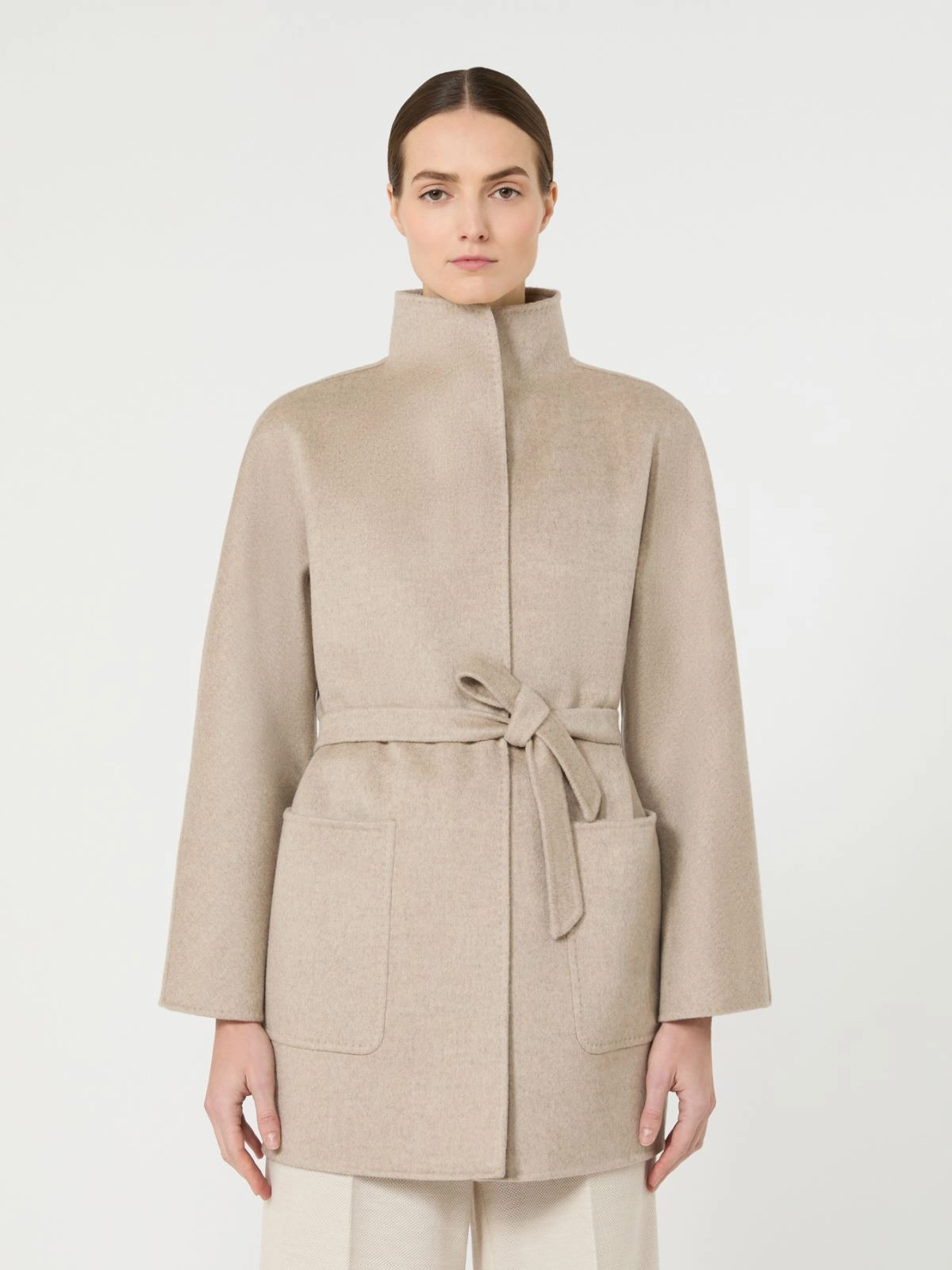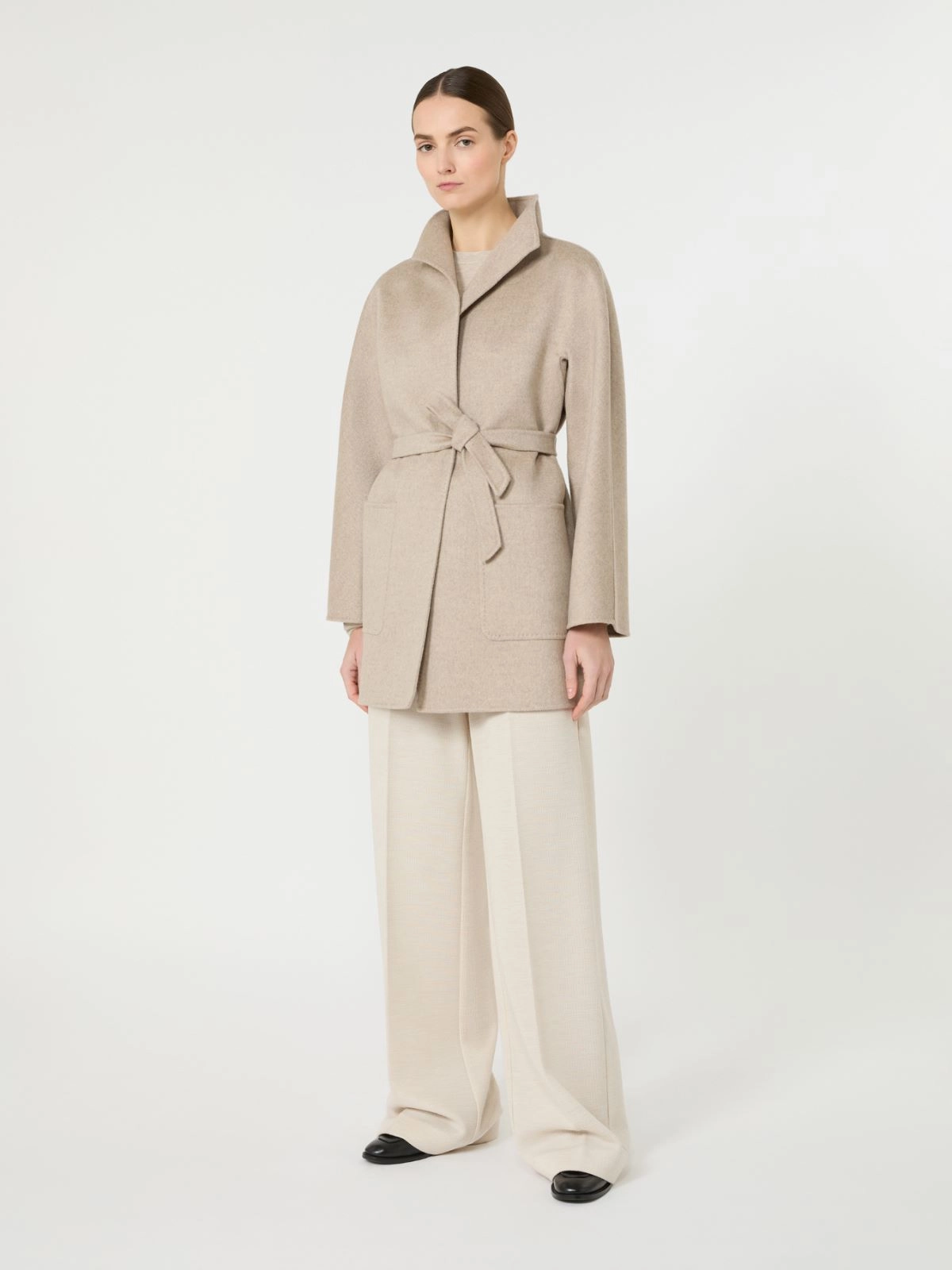 - Coat in hand-sewn double-faced matte pure cashmere broadcloth