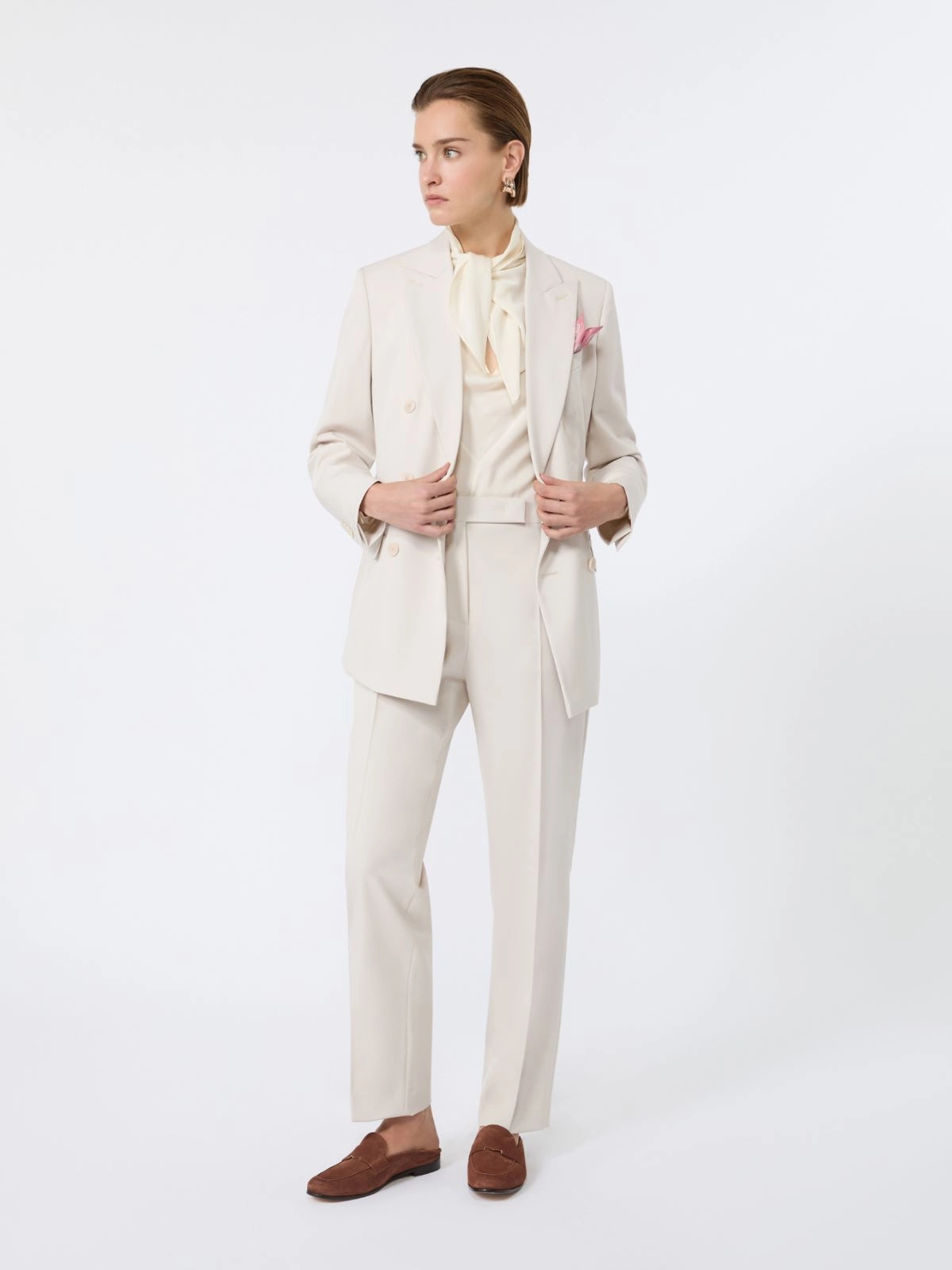 Slim-fit trousers with a modern performance, crease-resistant properties and a semi-matte surface that bestows a rich yet essential allure to the colours.