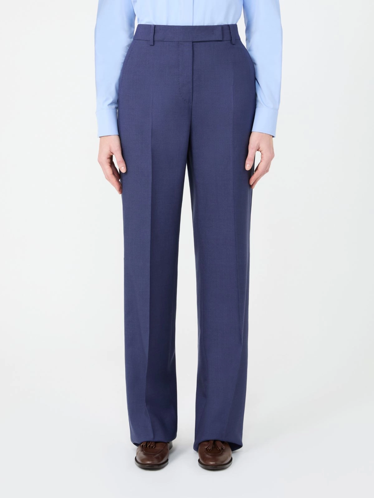 Tailored straight-leg trousers with a pressed crease at the front and back.