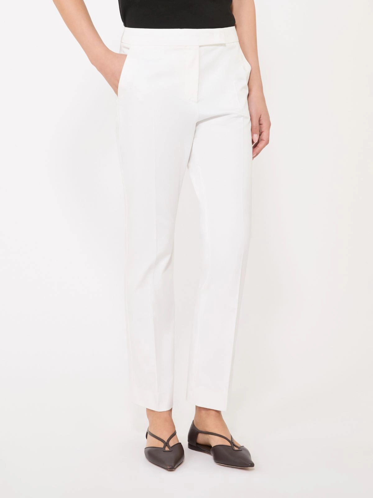 - High-cut waistband with a fly-covered zip and hook-and-bar fastening