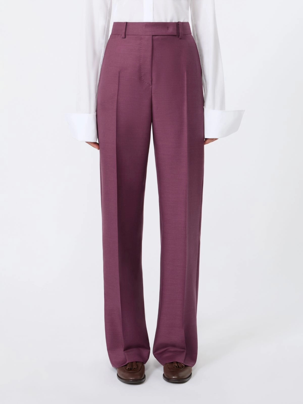 Wool, silk and mohair trousers - Wine-coloured