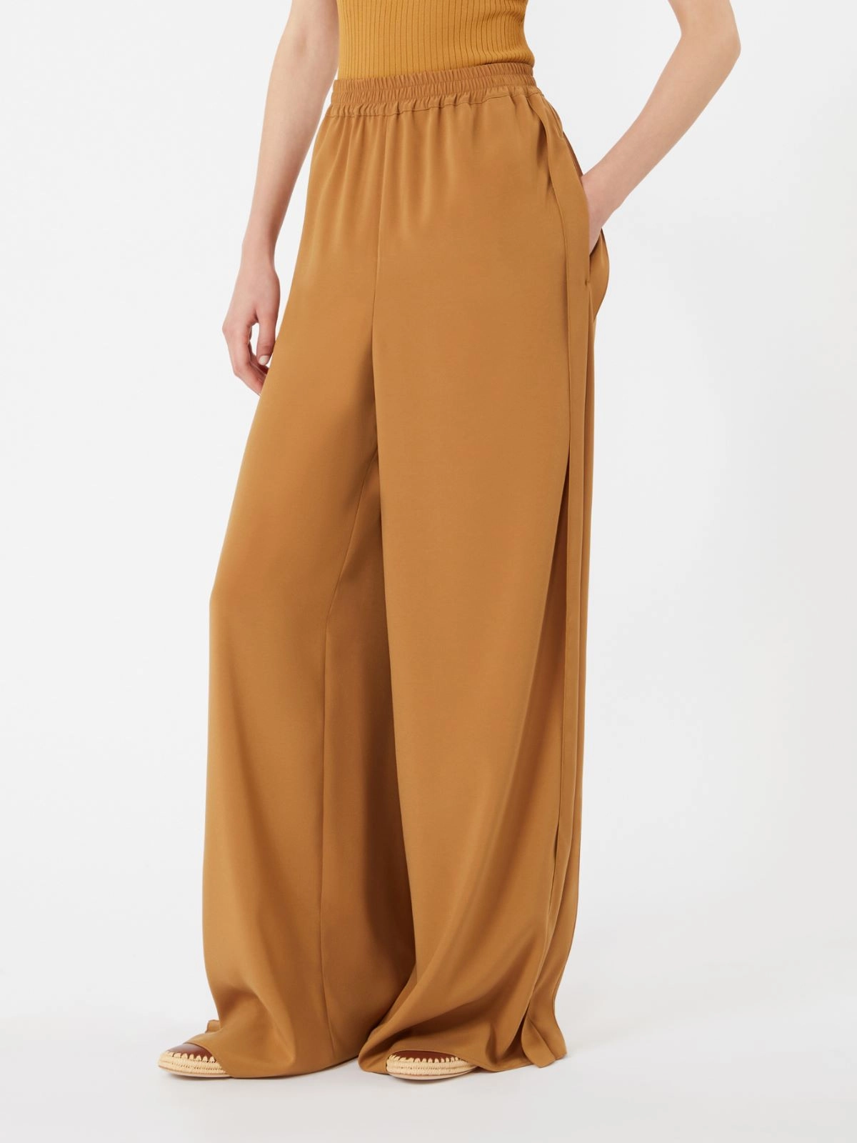 Wide-leg trousers with a relaxed fit, featuring side bands with inside-out effect flounces.