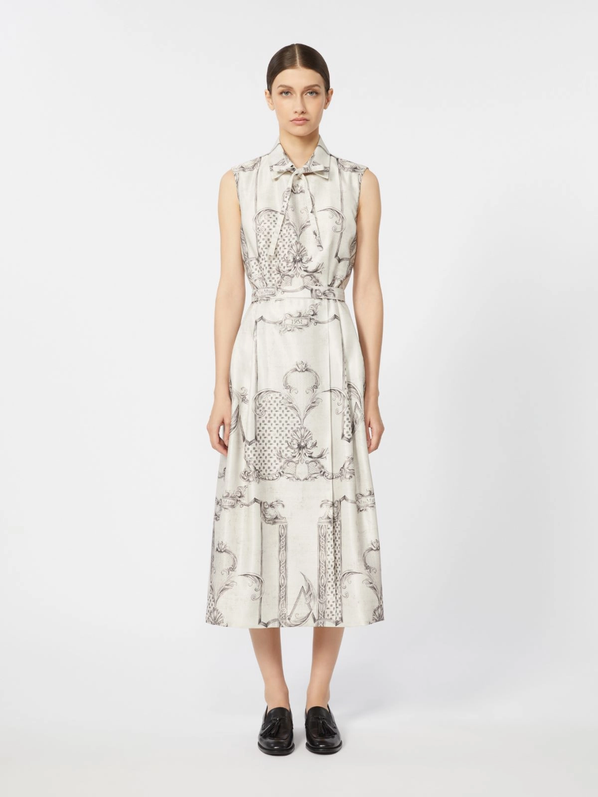 Long sleeveless shirt dress featuring an all-over signature collection print.