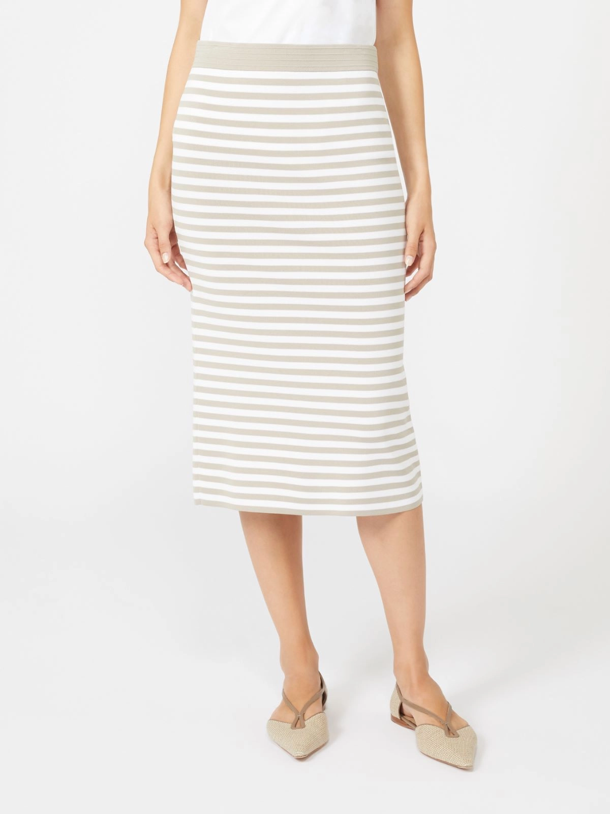 Midi skirt featuring a pencil silhouette that accentuates the figure.