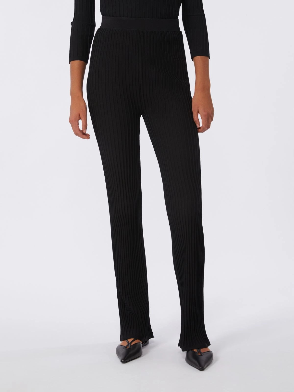 Viscose crêpe yarn rib-knit trousers - Black