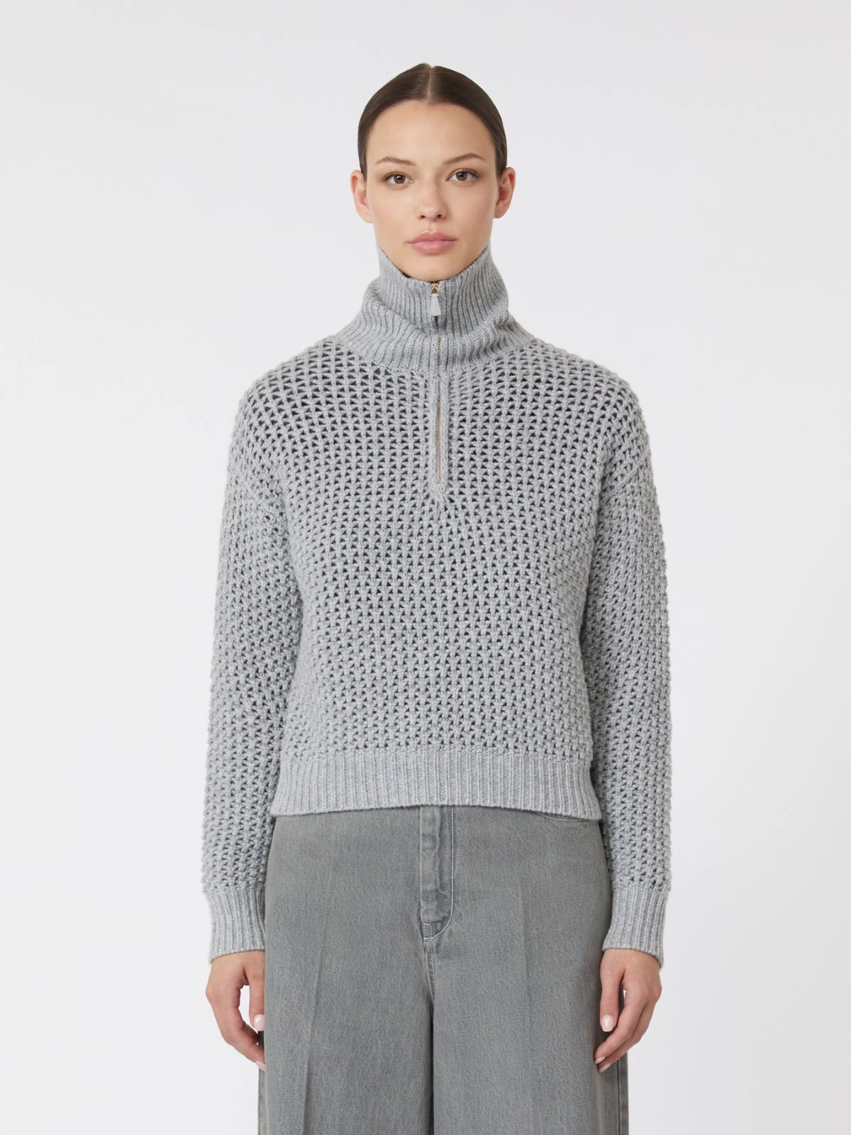 Mesh-knit cropped sweater.