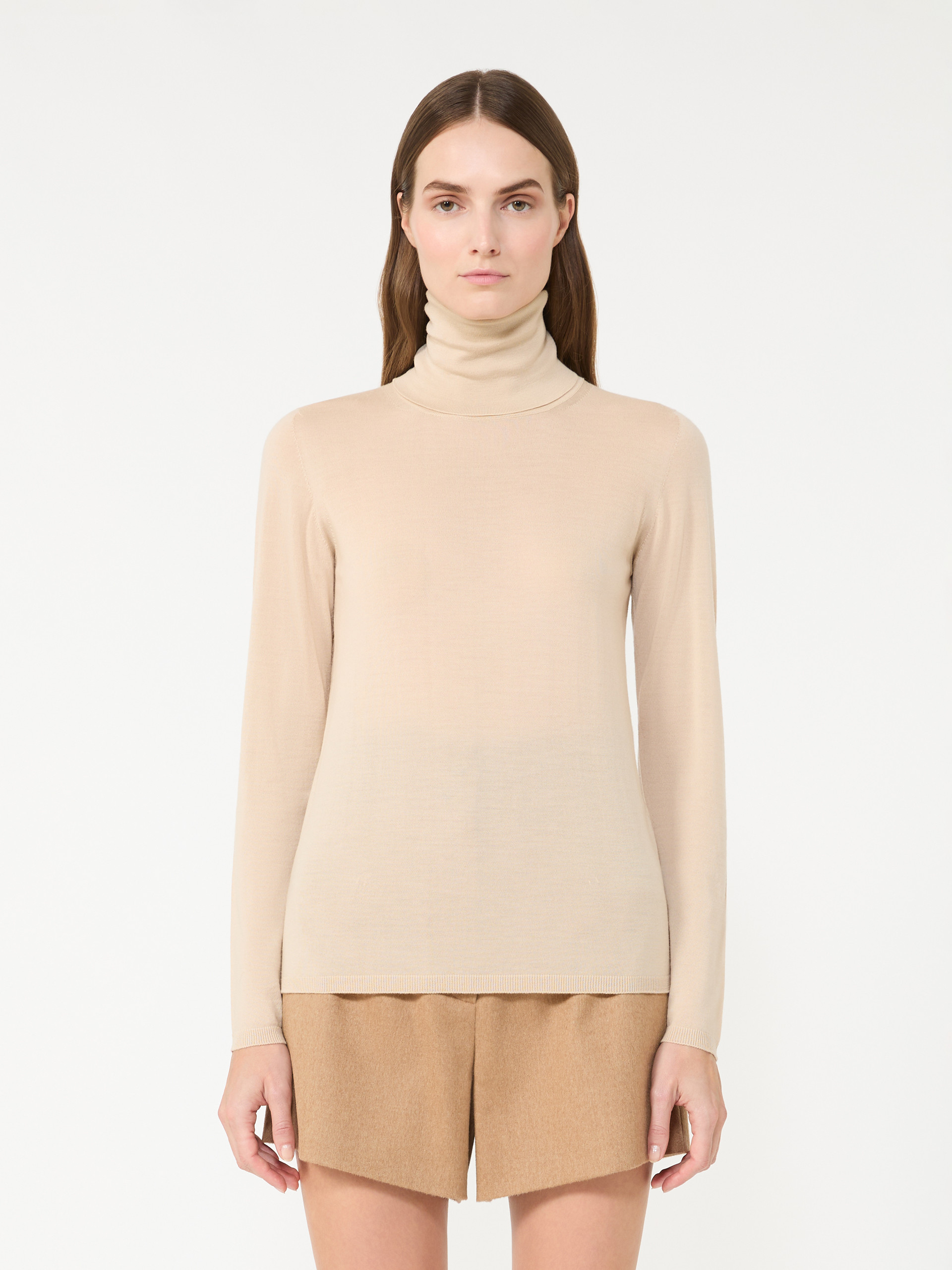 - Lightweight, brushed pure wool yarn turtleneck jumper