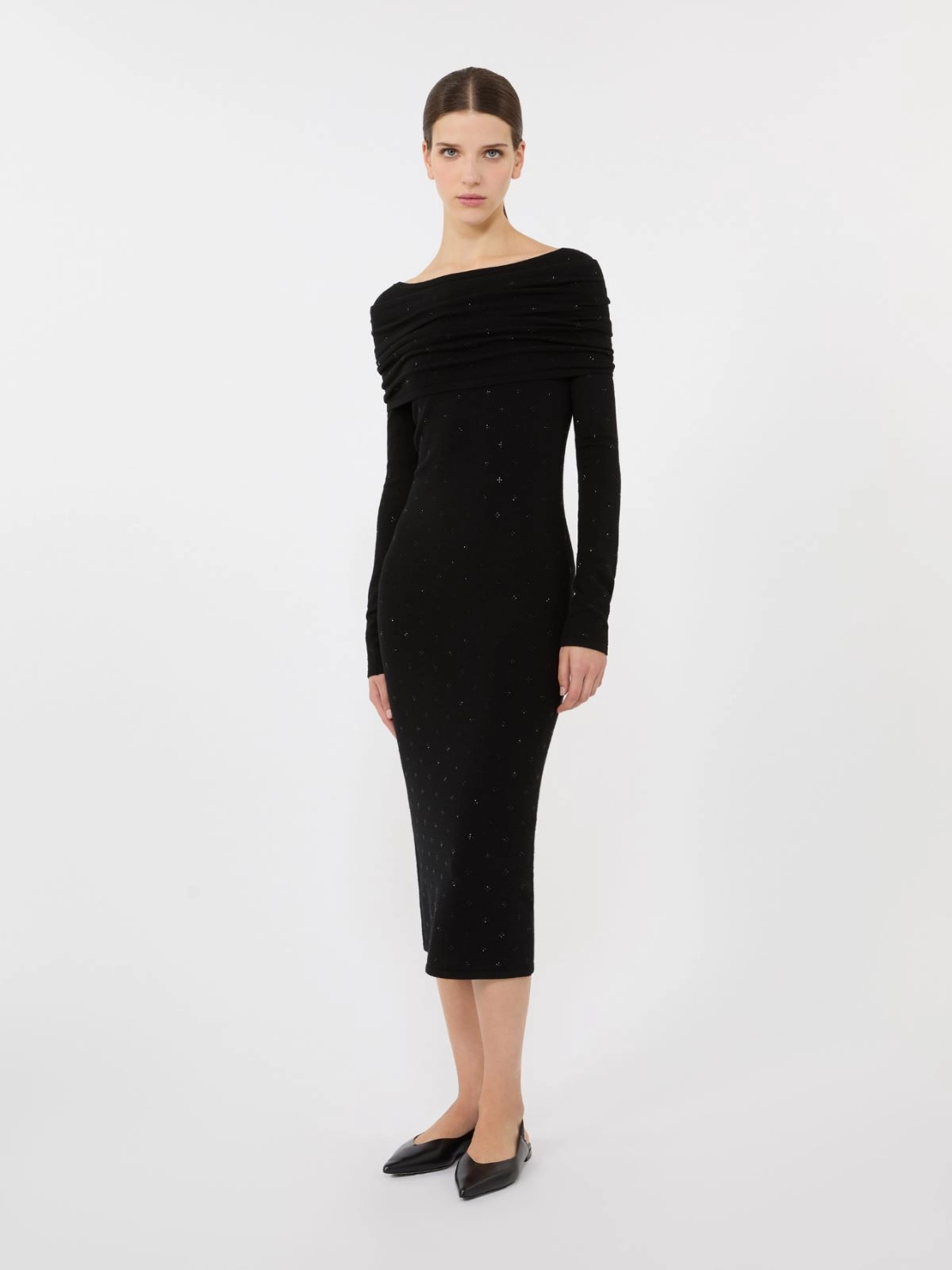 Midi dress in a fabric-stitch knit, embellished all over with rhinestone embroidery.
