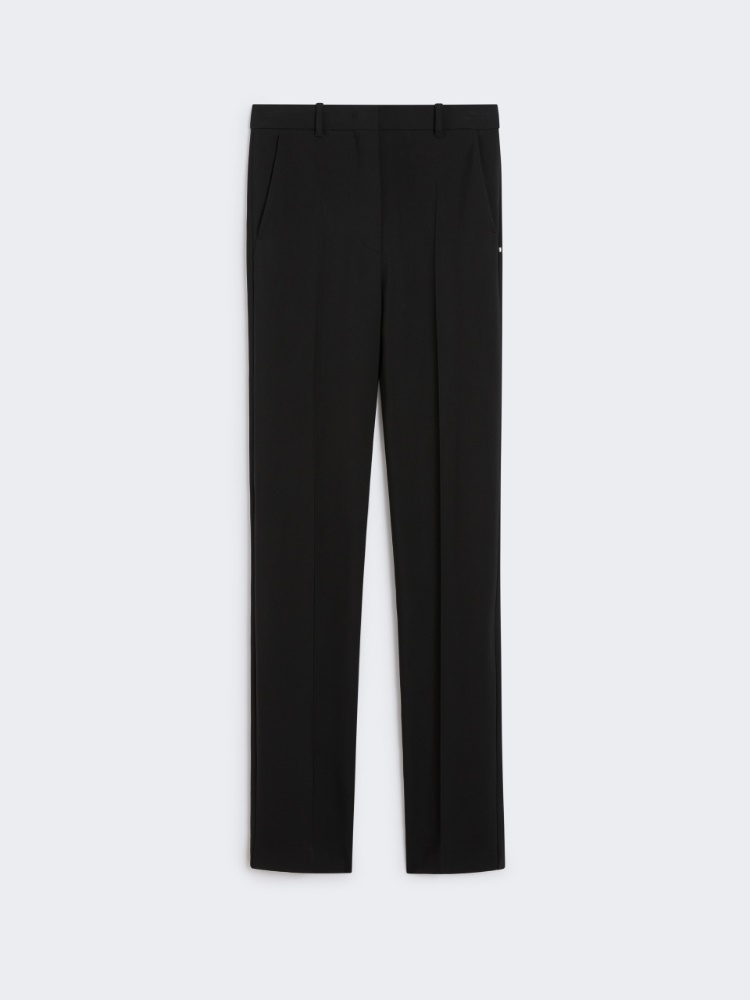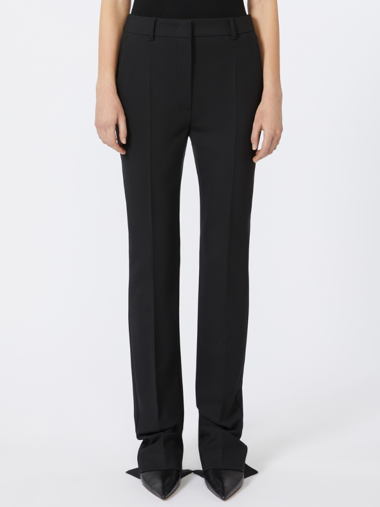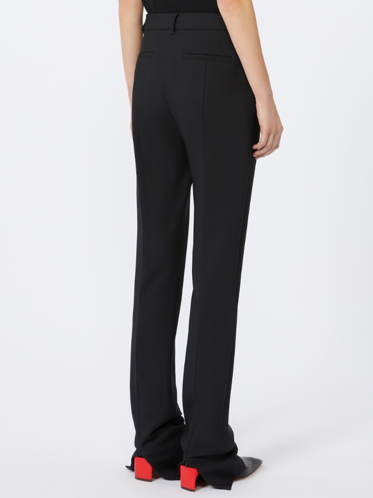Cigarette trousers with a slightly low waist and tailored details. The trouser pleat opens at the rear of the ankle, forming small slits.