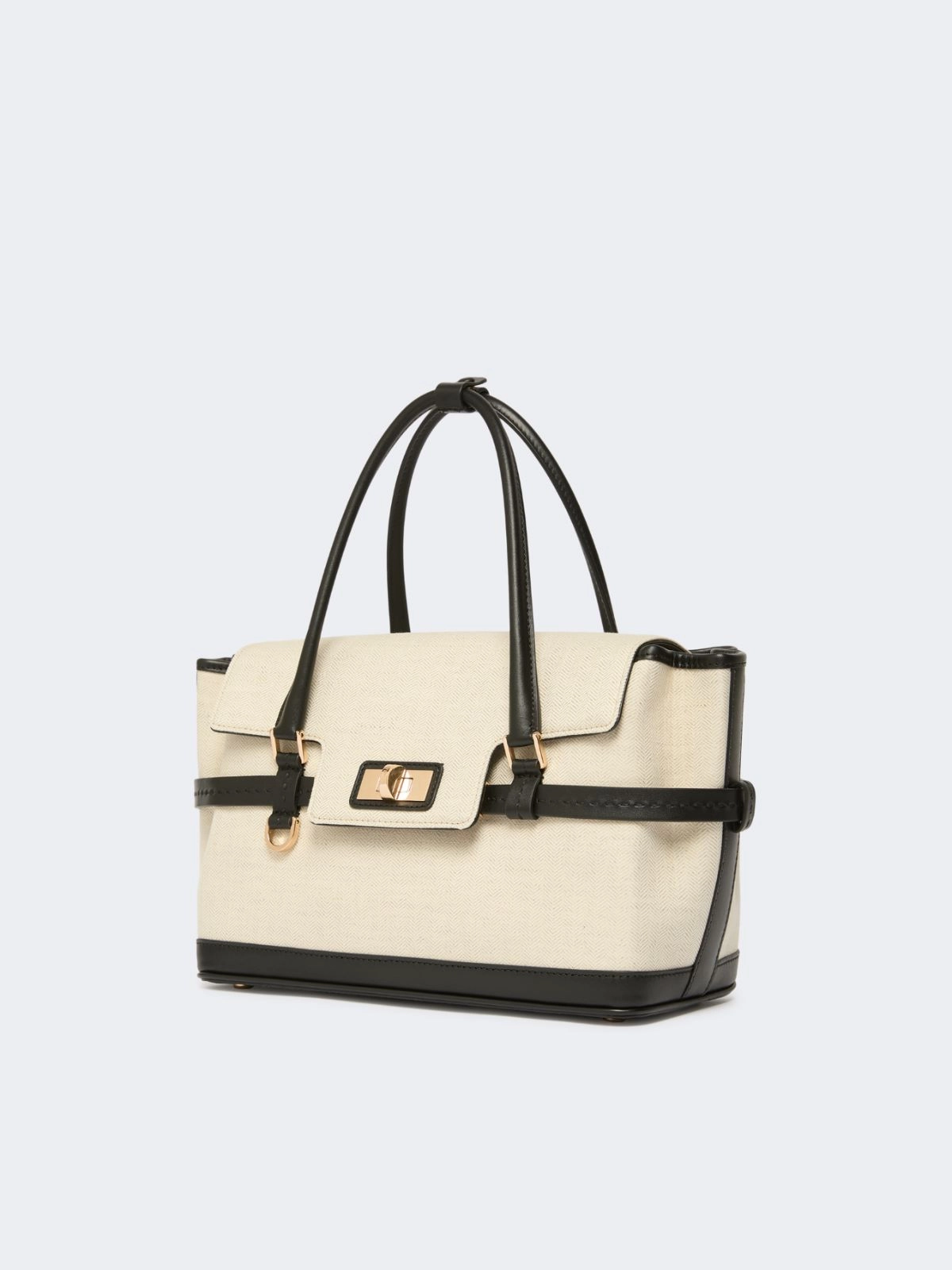 - Micro-chevron canvas handbag made of yarn-dyed cotton and linen