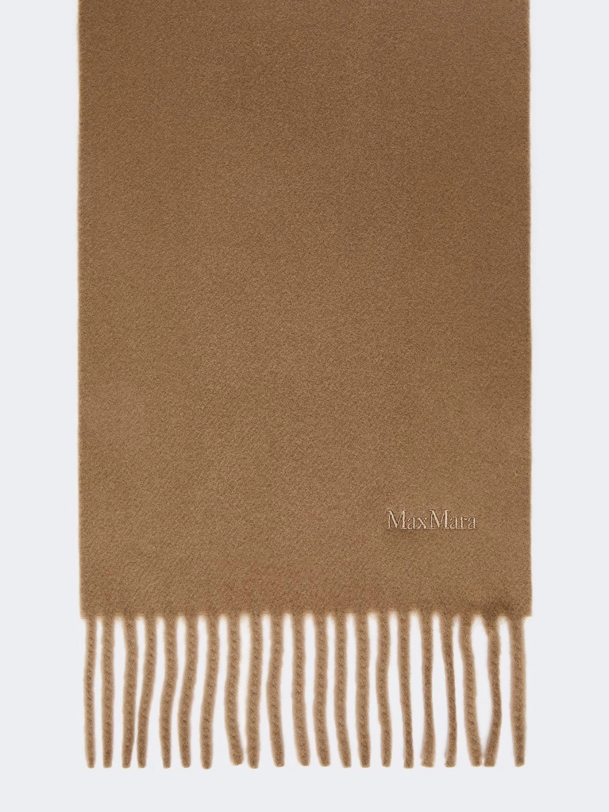 Long scarf finished with tonal Max Mara logo embroidered on the hem.