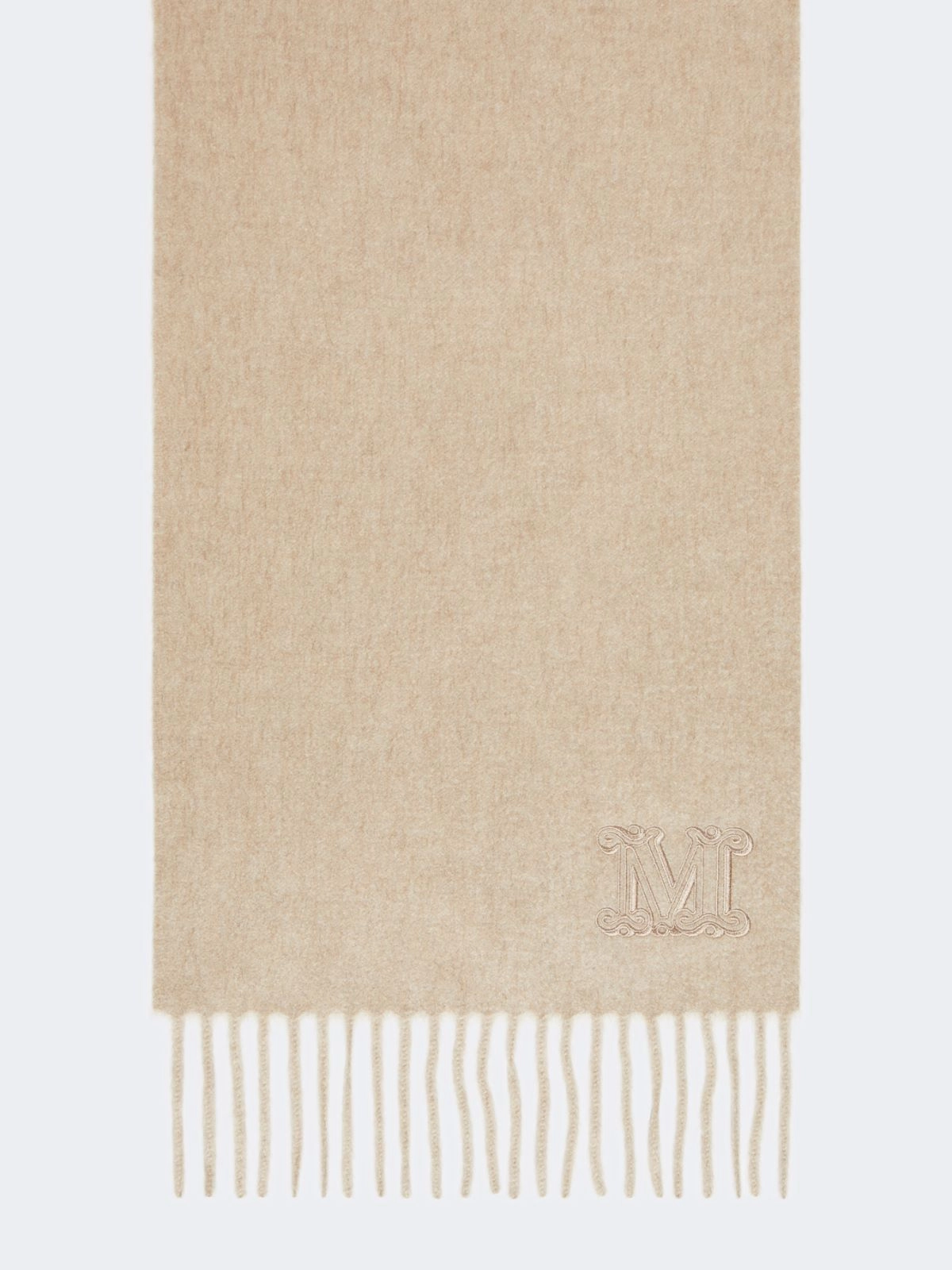 Stole with minimalist design, embellished with elegant, tonal embroidered M Monogram detail at the bottom.
