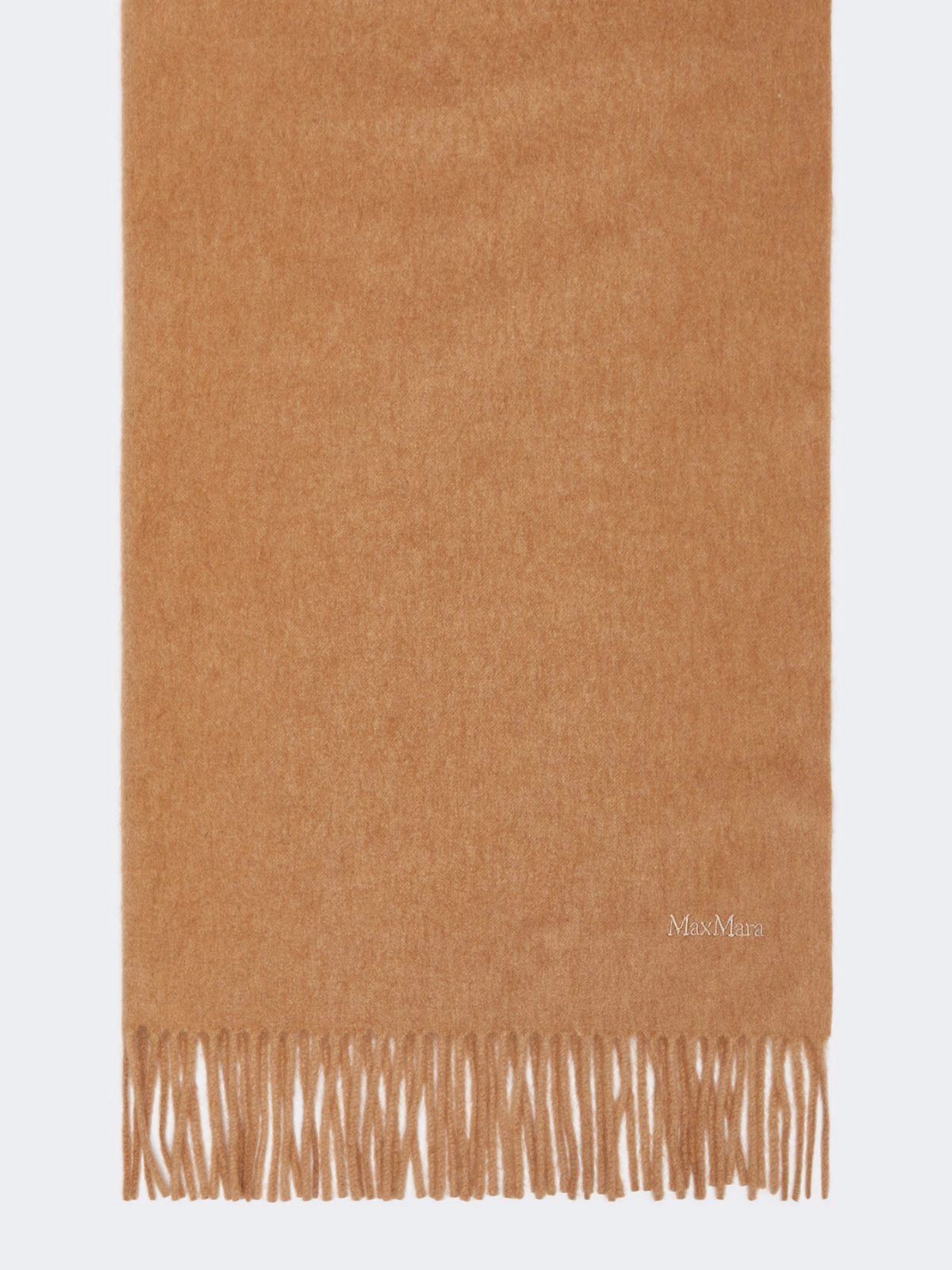 Wide and enveloping stole featuring embroidered Max Mara lettering detail at the hem.