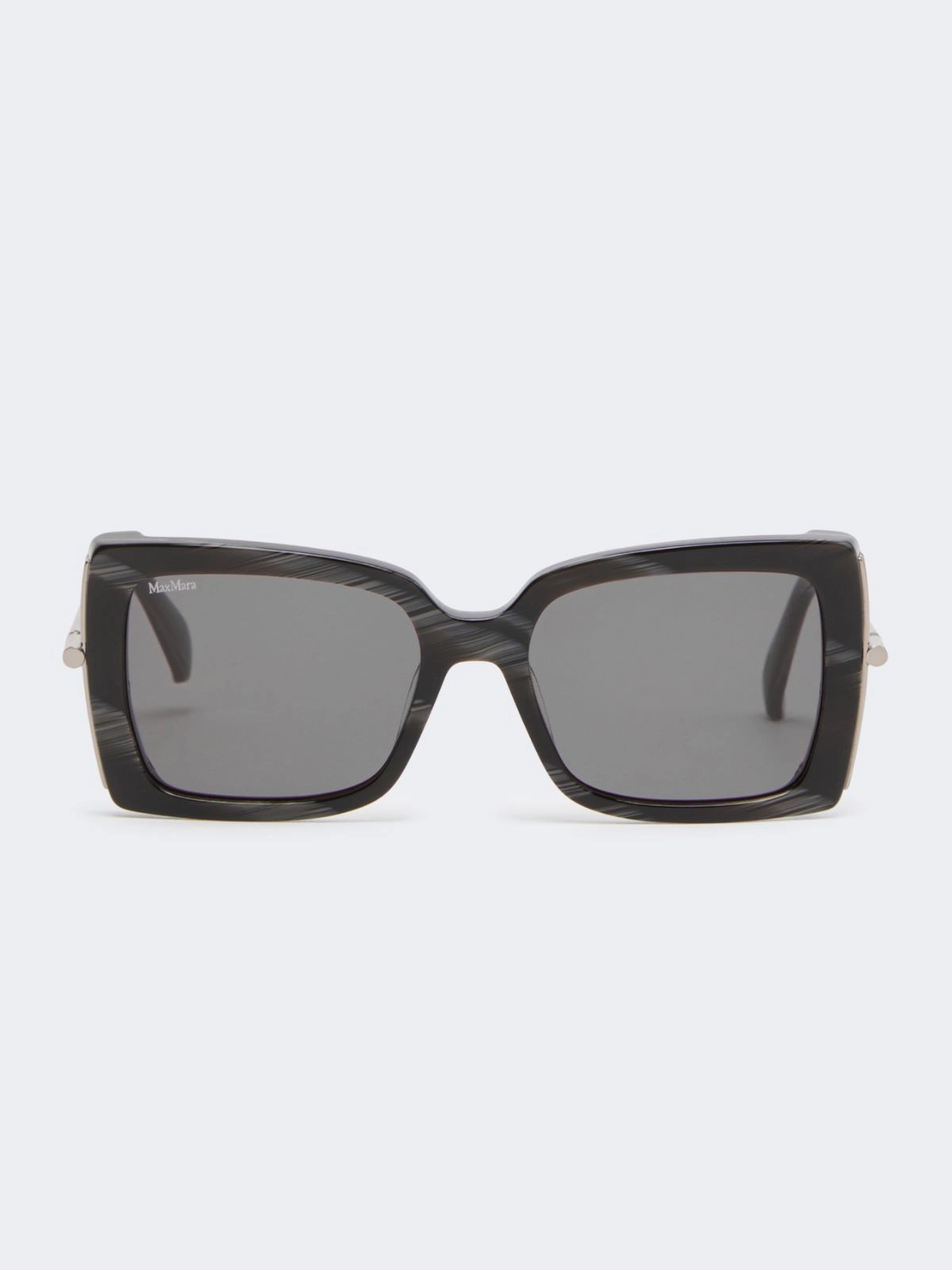 Sunglasses with a square acetate front, distinguished by a clean design and a metal insert on the side that connects the front to the temple, accentuating the purity of the lines.