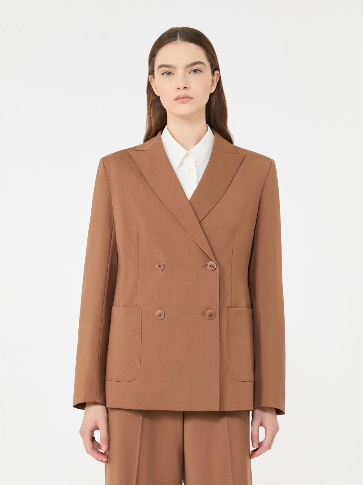Double-breasted stretch wool blazer - Tobacco