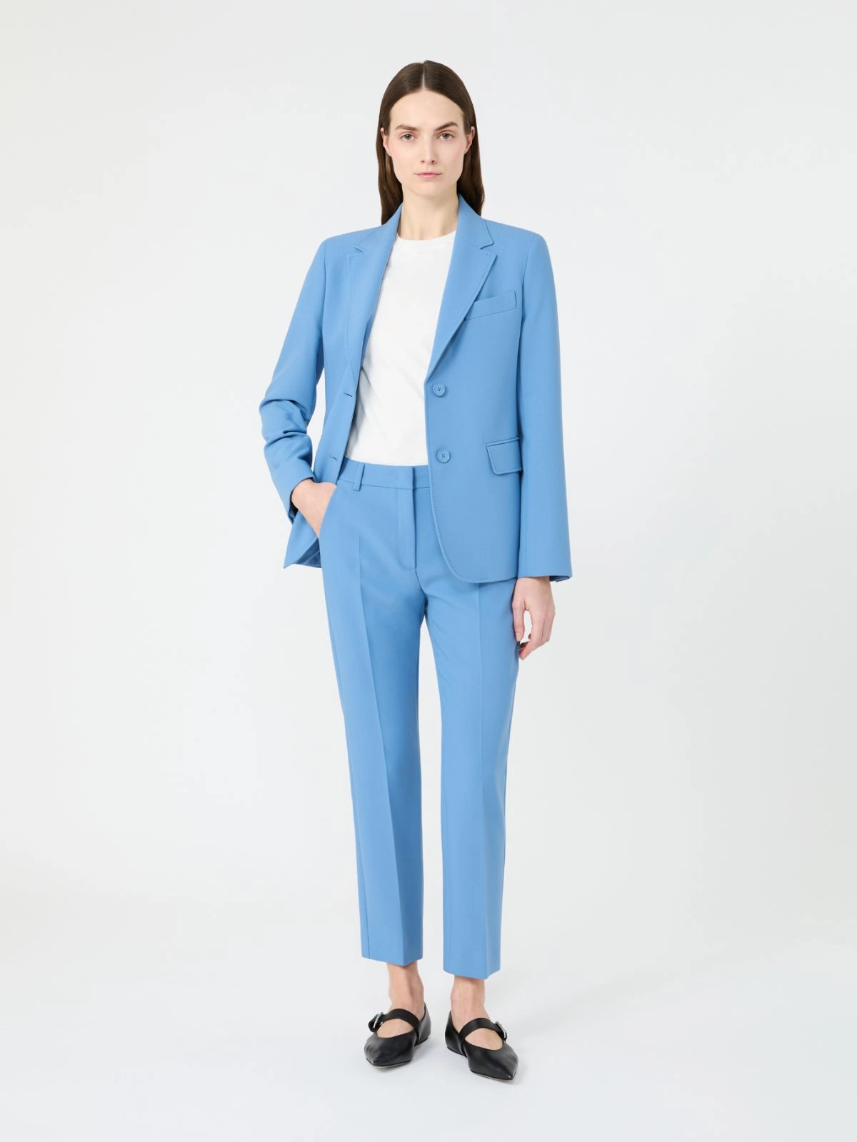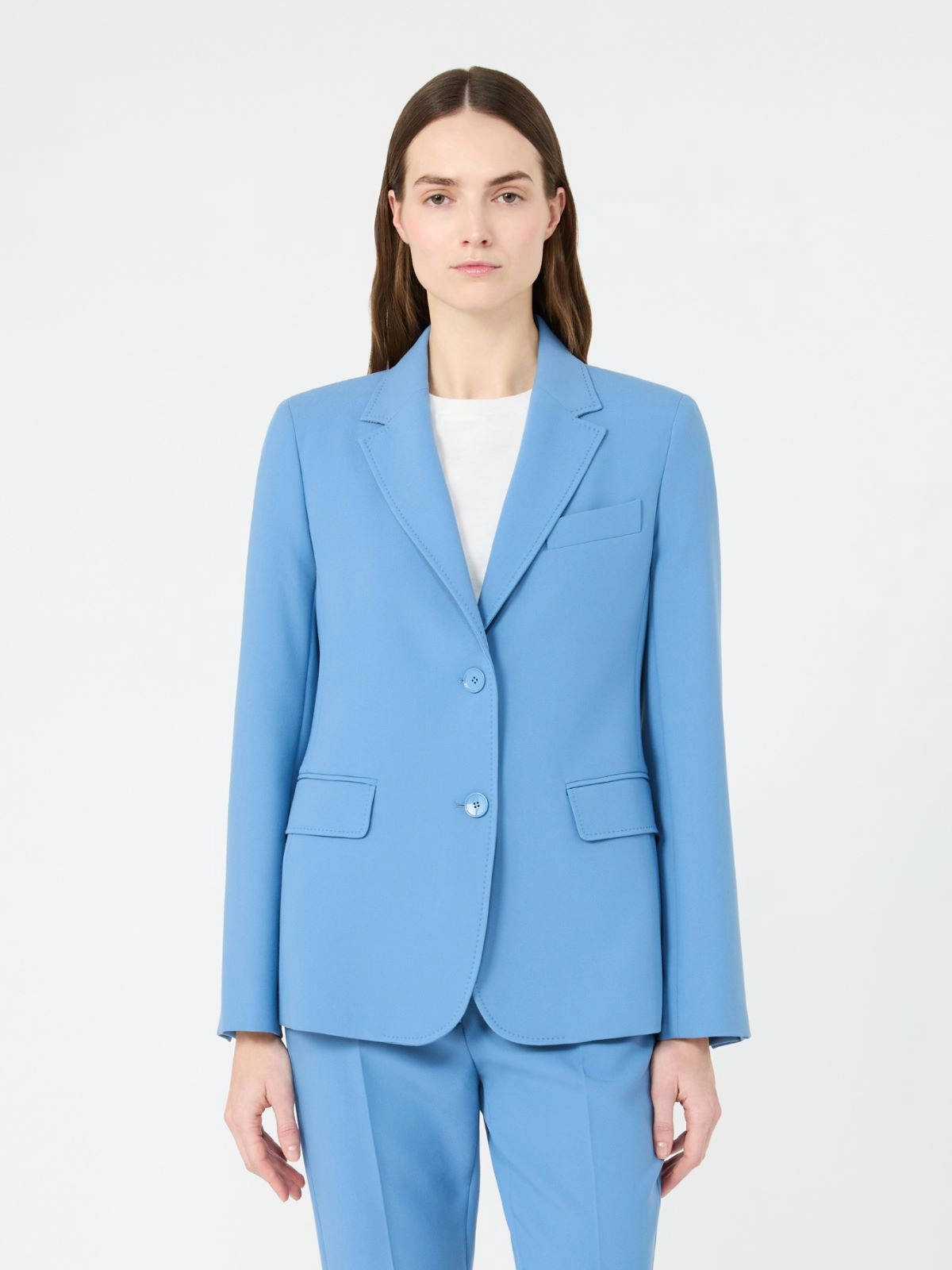 - Lapel collar and set-in sleeves with buttoned cuffs