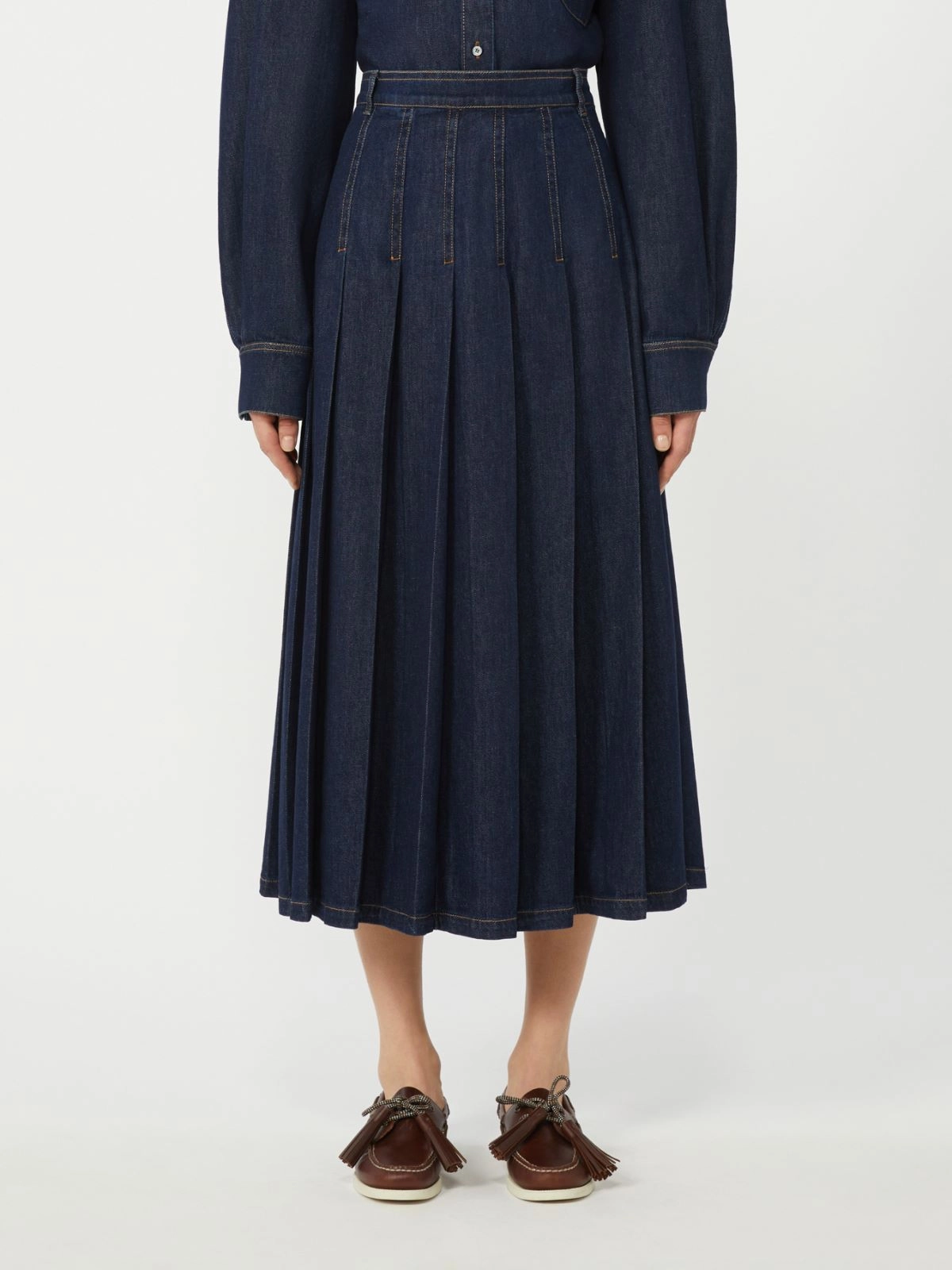 Long skirt with semi-sewn ironed pleats and stitching motif on the sides.