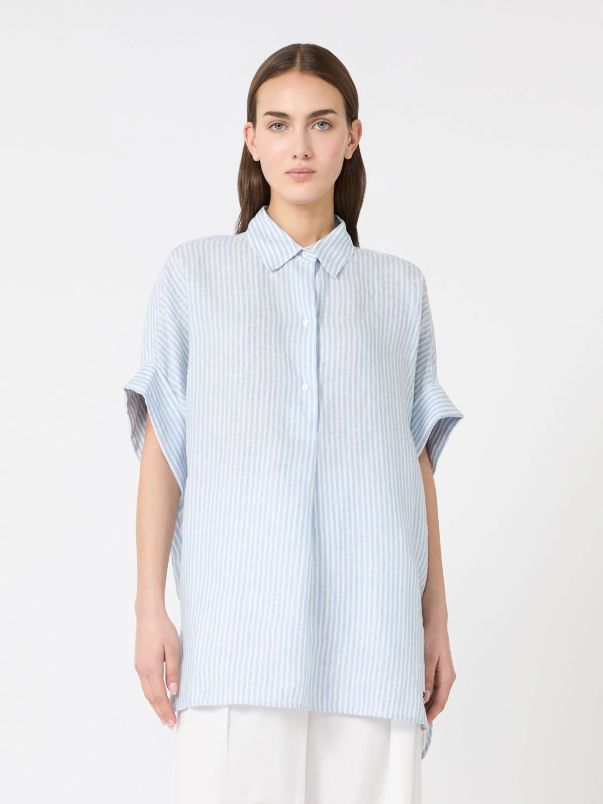 Printed linen canvas shirt + LIGHT BLUE - Max Mara
