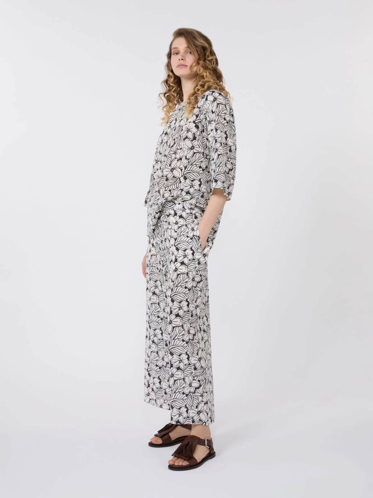 Blouse with a flowing silhouette, featuring a collection pattern printed all over.