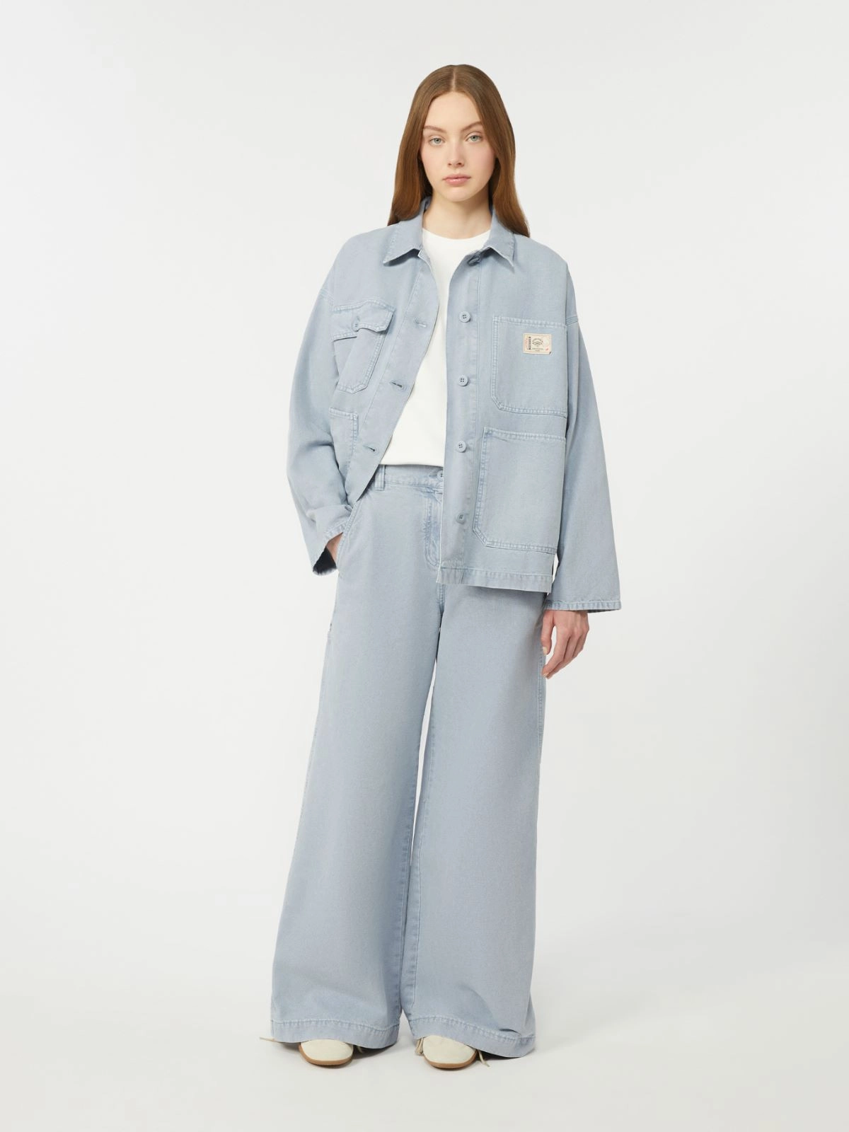 Wide-leg trousers featuring workwear details and carpenter pockets on the leg.