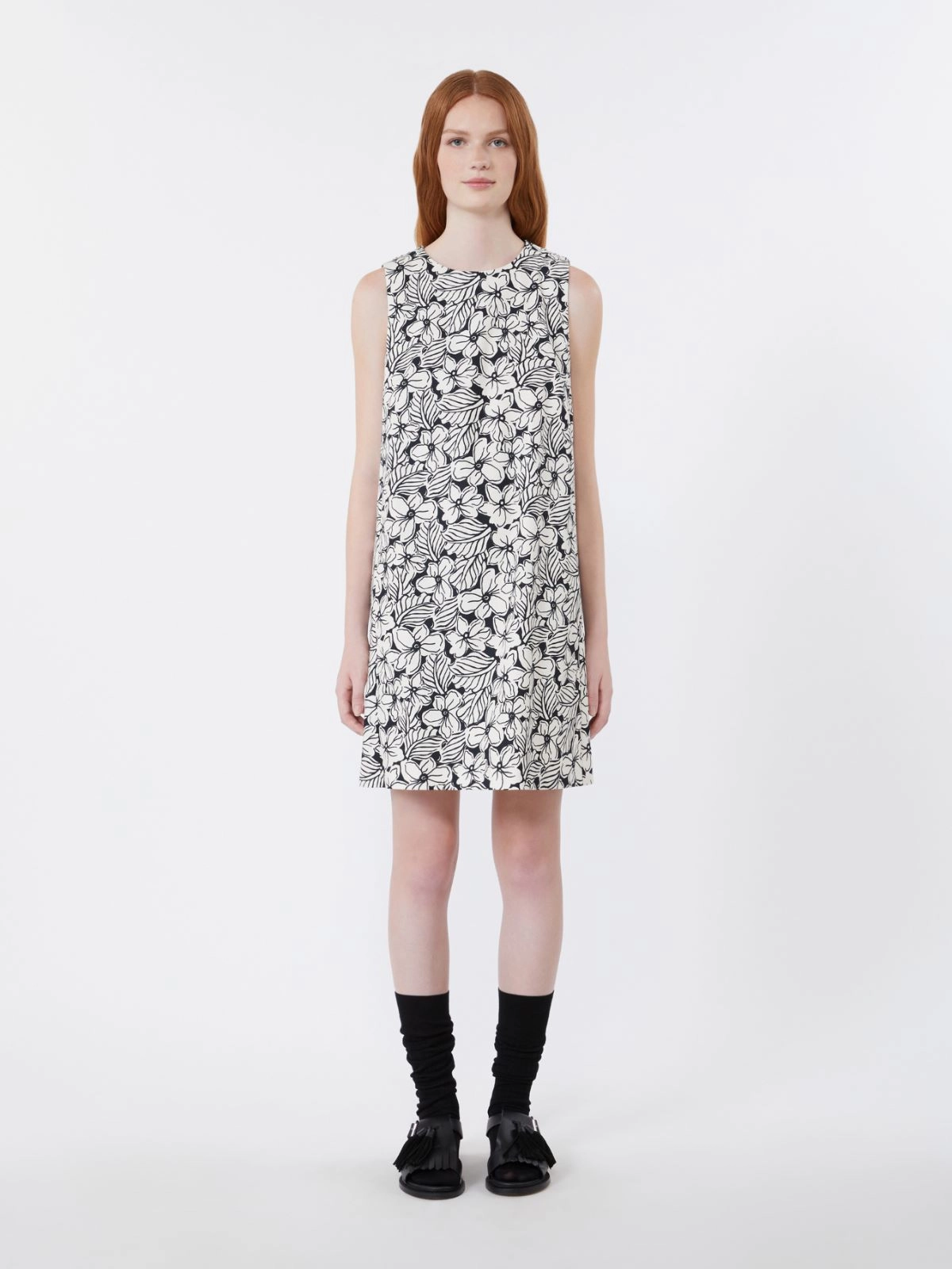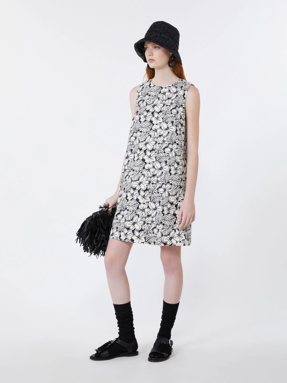 Printed cotton basketweave A-line dress - Black