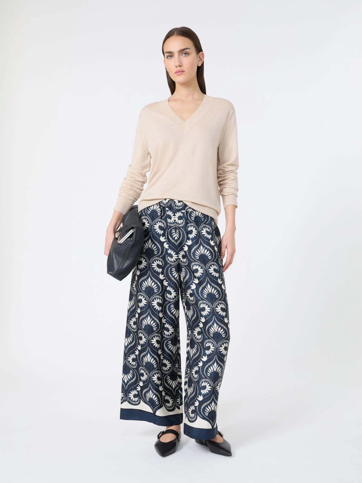 Fluid printed silk trousers