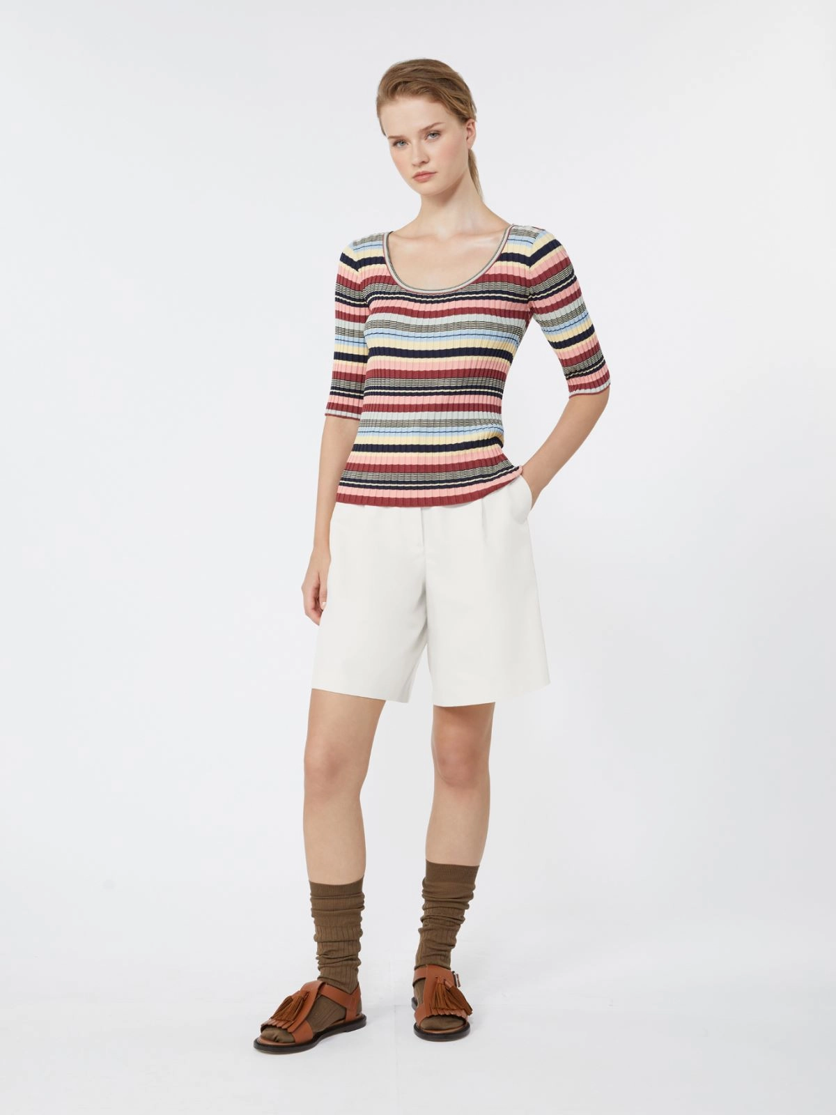Stretch viscose yarn ribbed jumper - Multicolour