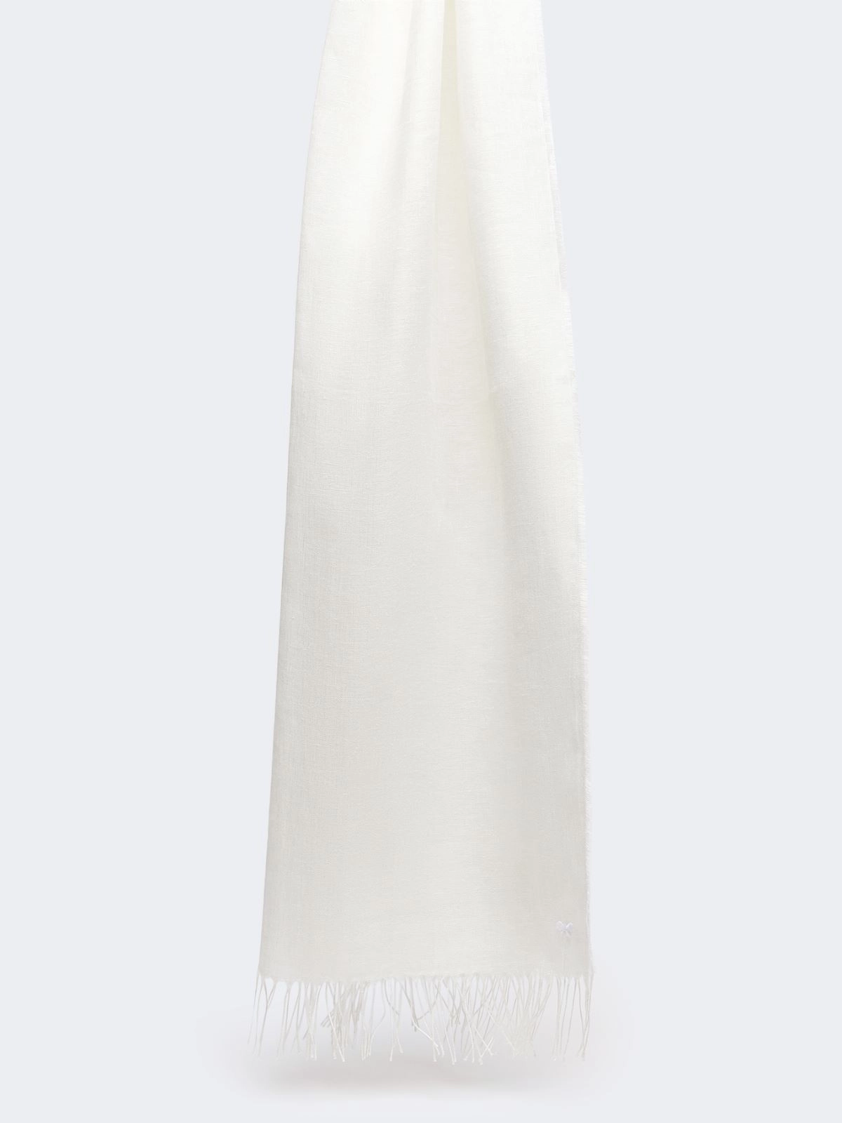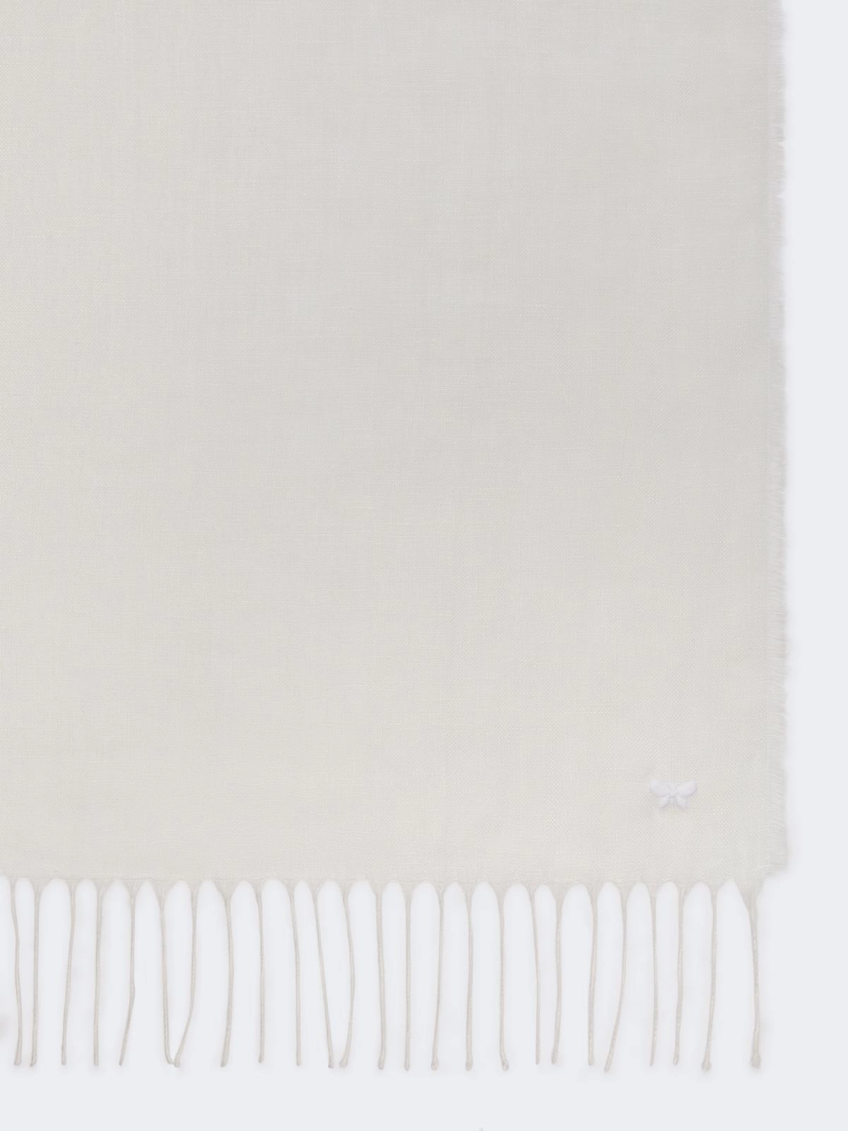 Solid colour stole with fringed ends embellished with a matching butterfly logo embroidered on the hem.