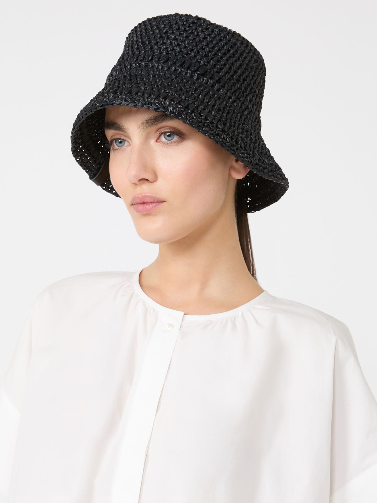 Bucket hat with a distinctive see-through woven texture.
