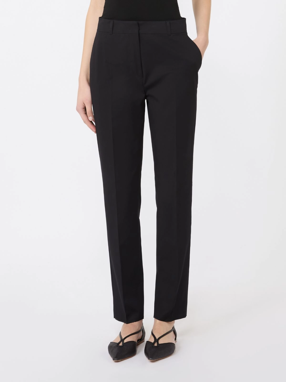 Stretch cotton cigarette trousers - Black
