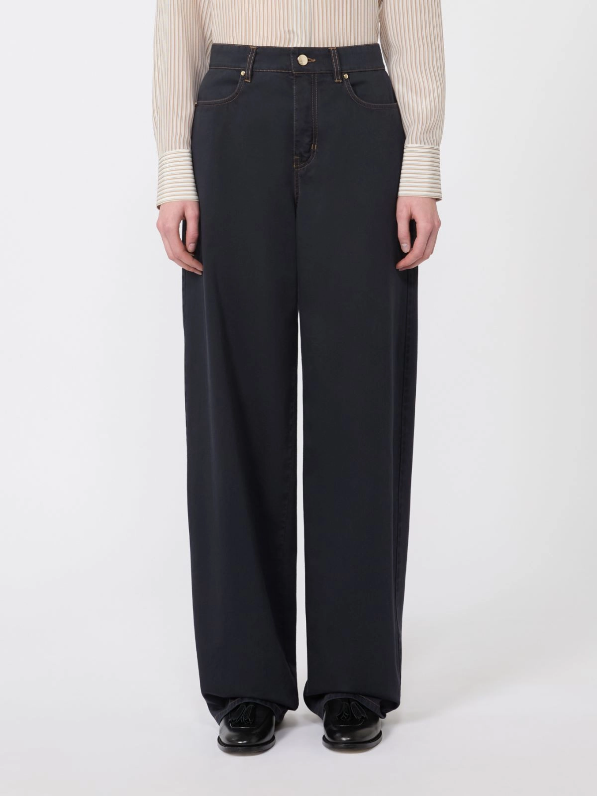 Baggy trousers with jeans-style details.