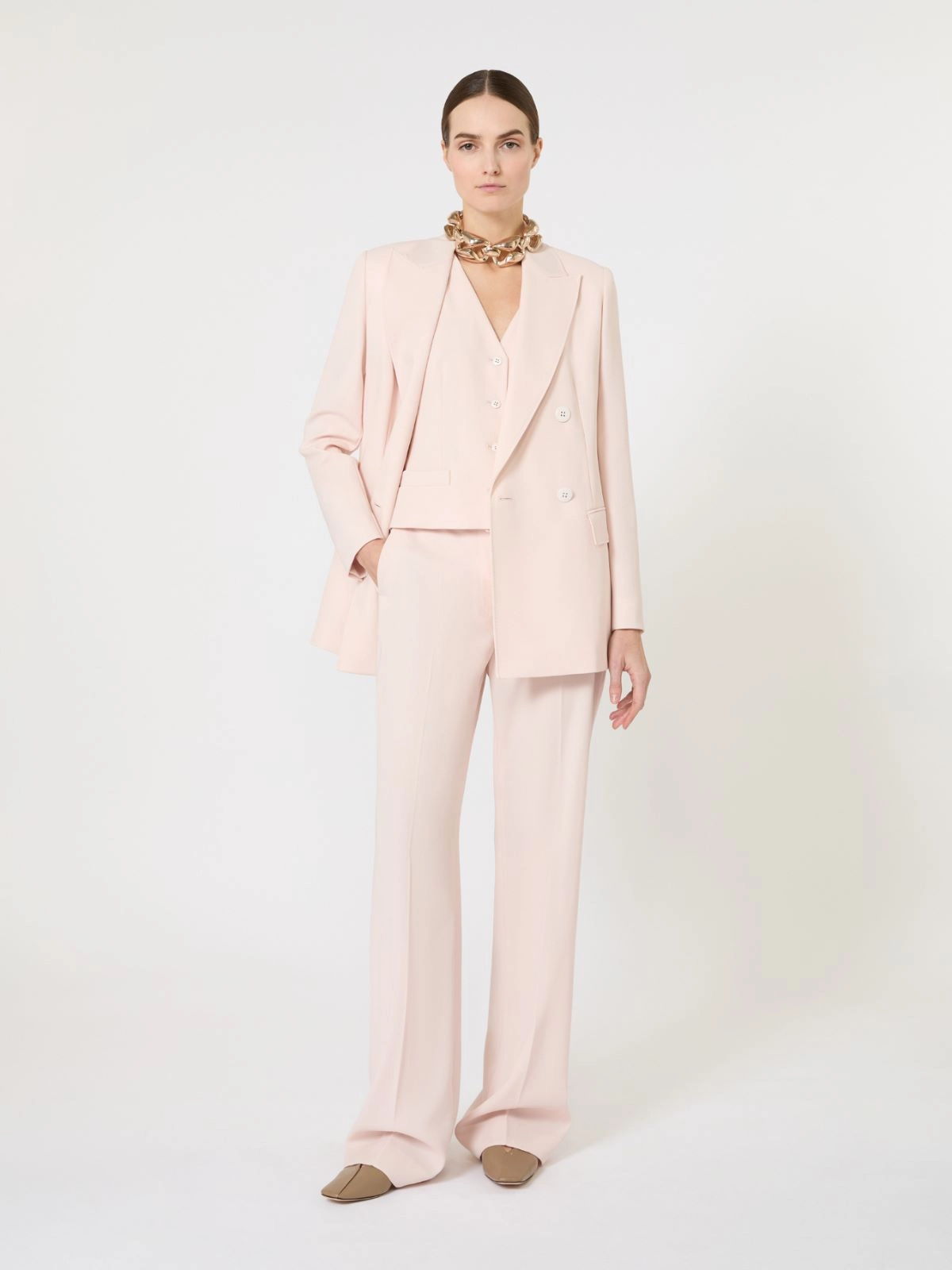 Vest with a feminine silhouette, slightly fitted at the waist and with a small central slit on the back.