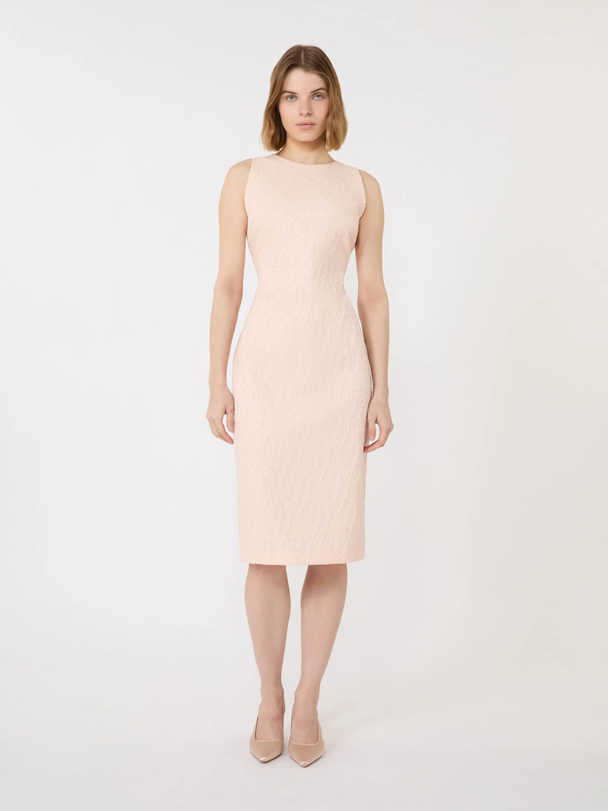 - Stretch jacquard cloque dress with a floral pattern