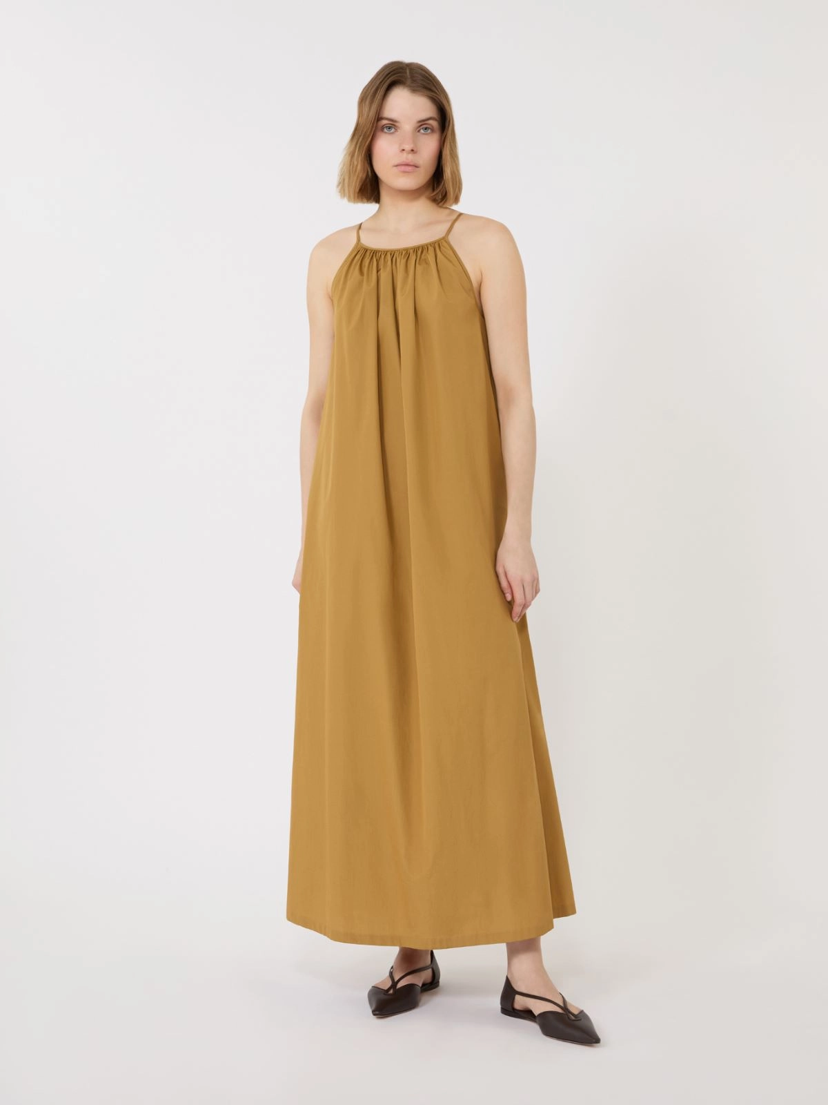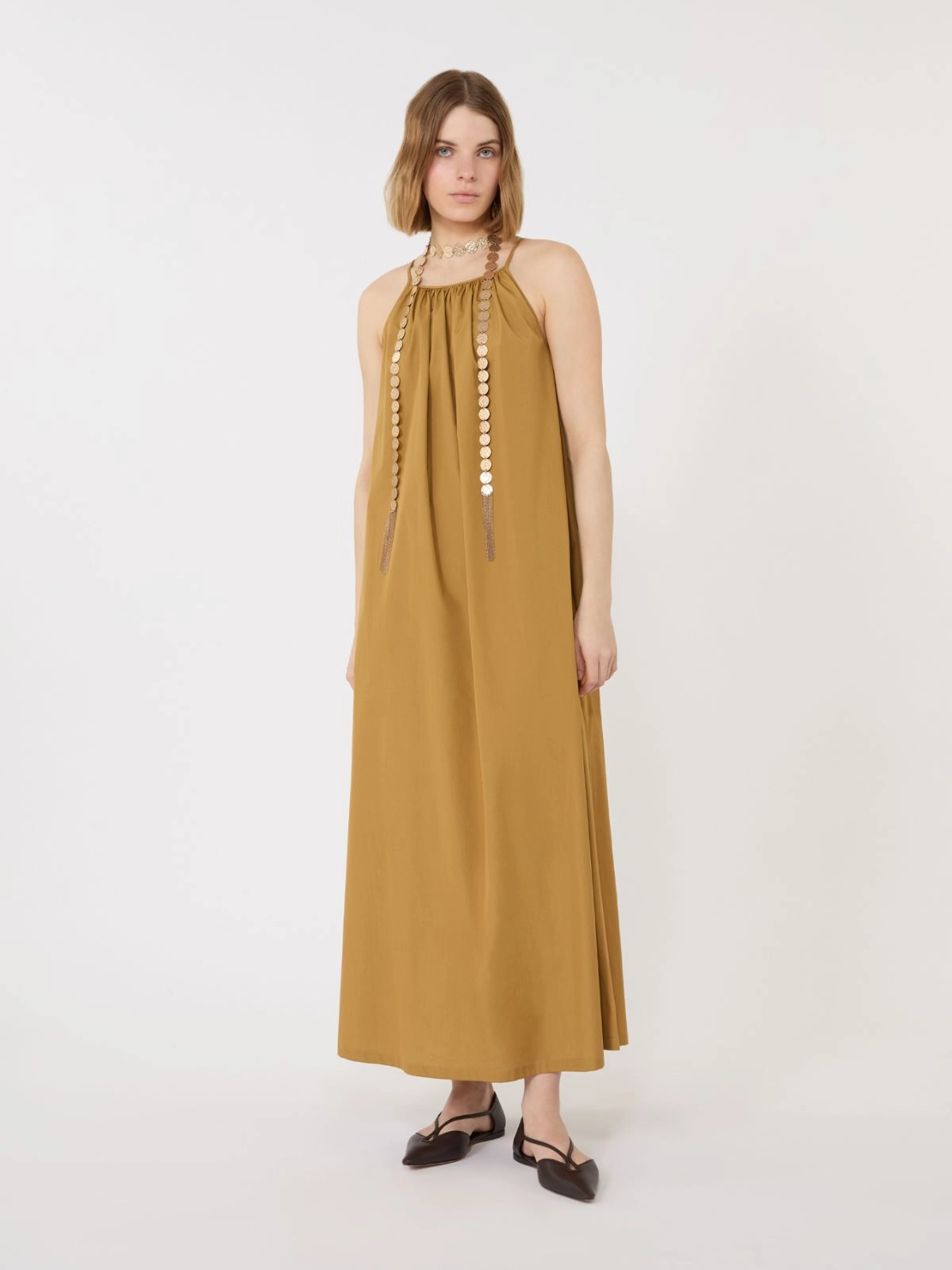 Long sleeveless dress featuring a silhouette-accentuating matching belt.