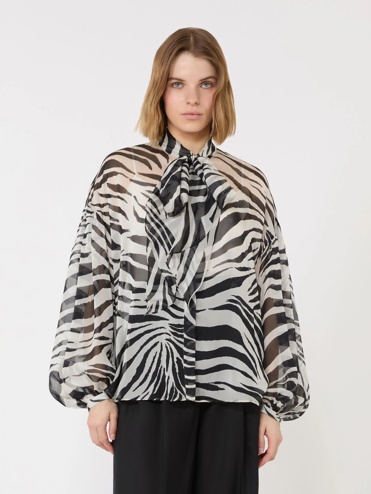 Shirt 100% silk. Top 85% acetate, 10% silk, 5% polyamide.