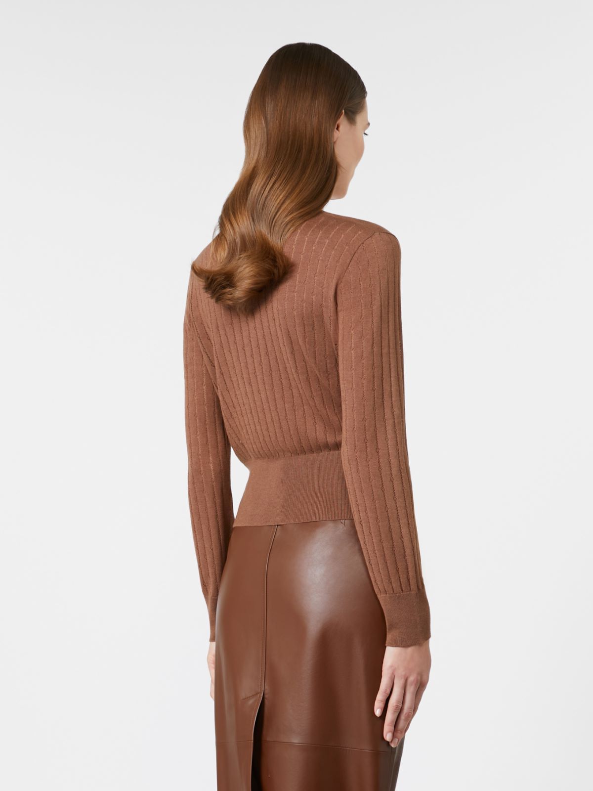 Knitted fabric 55% silk, 45% wool; - exclusive of decoration.
