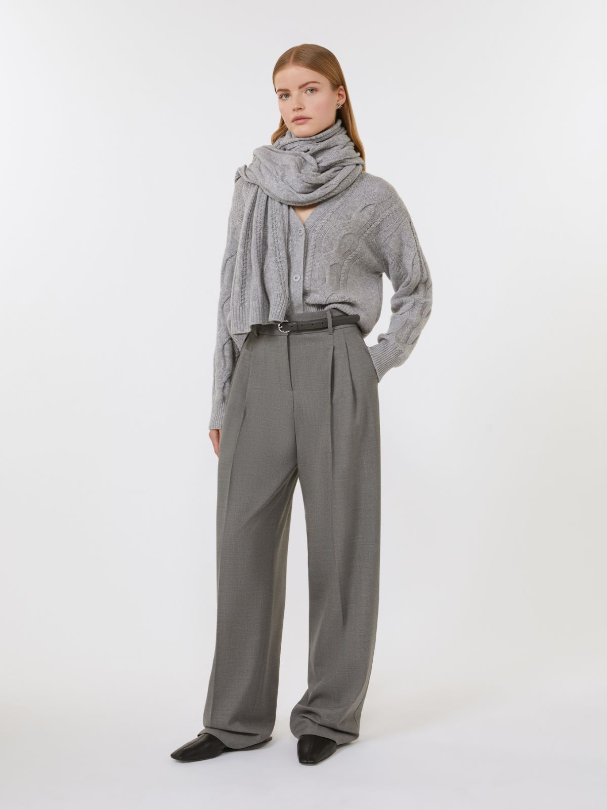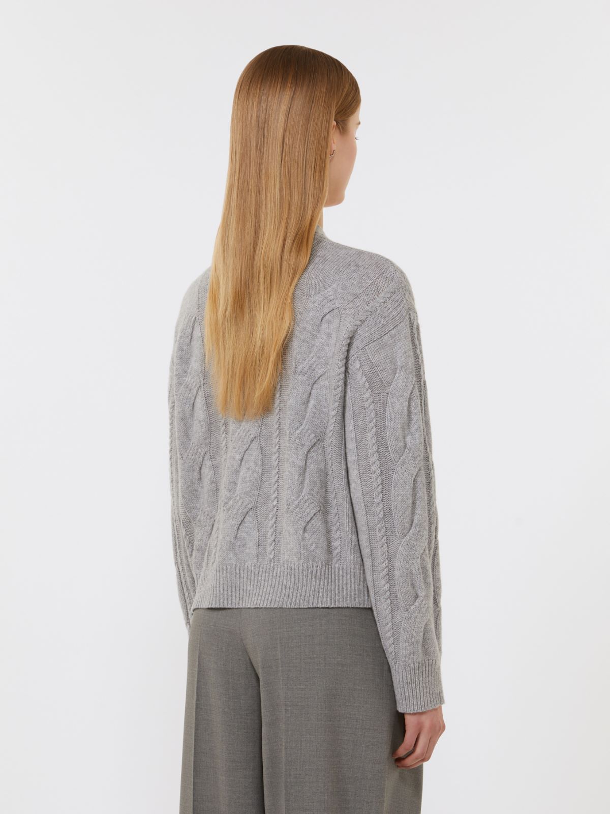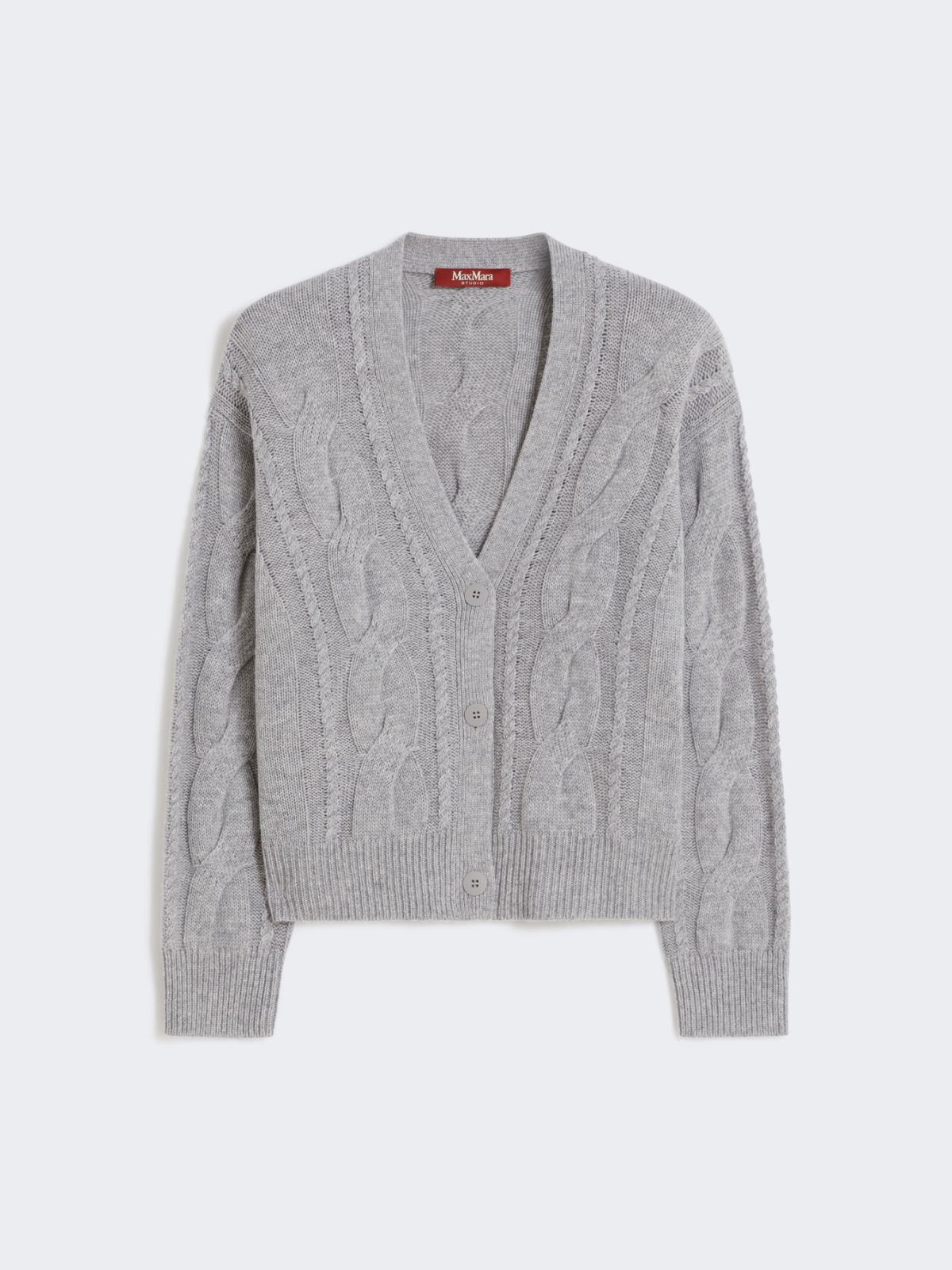 Cropped cardigan crafted in a wool and cashmere blend with cable-knit