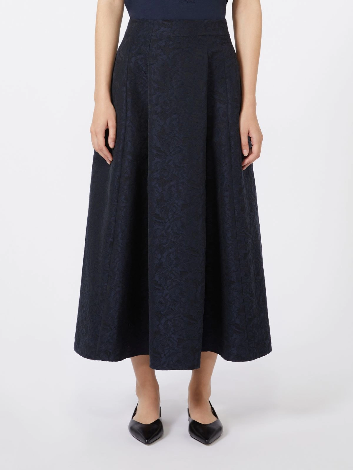 - Cotton-blend jacquard fabric skirt Wide, flared line